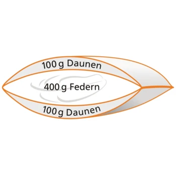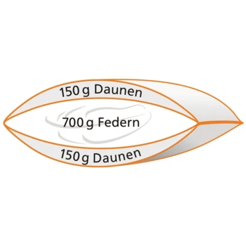 - Füllmaterial: äußere Daunen-Kammern 100 % naturbelassene Freiland-Daunen,
