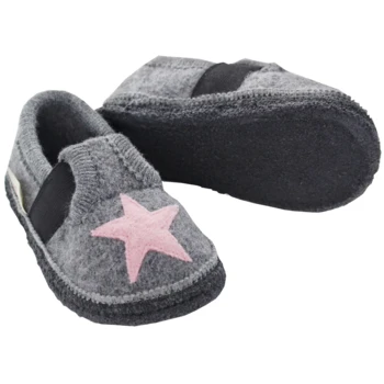 Kinder Hausschuhe Walkpuschen Stern Grau-meliert