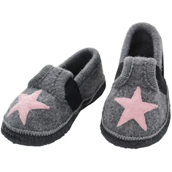 Kinder Hausschuhe Walkpuschen Stern Grau-türkis