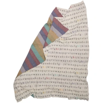 GOTS-zertifiziert. 1. Seite Alphabet, 2. Seite Regenbogenfarben.